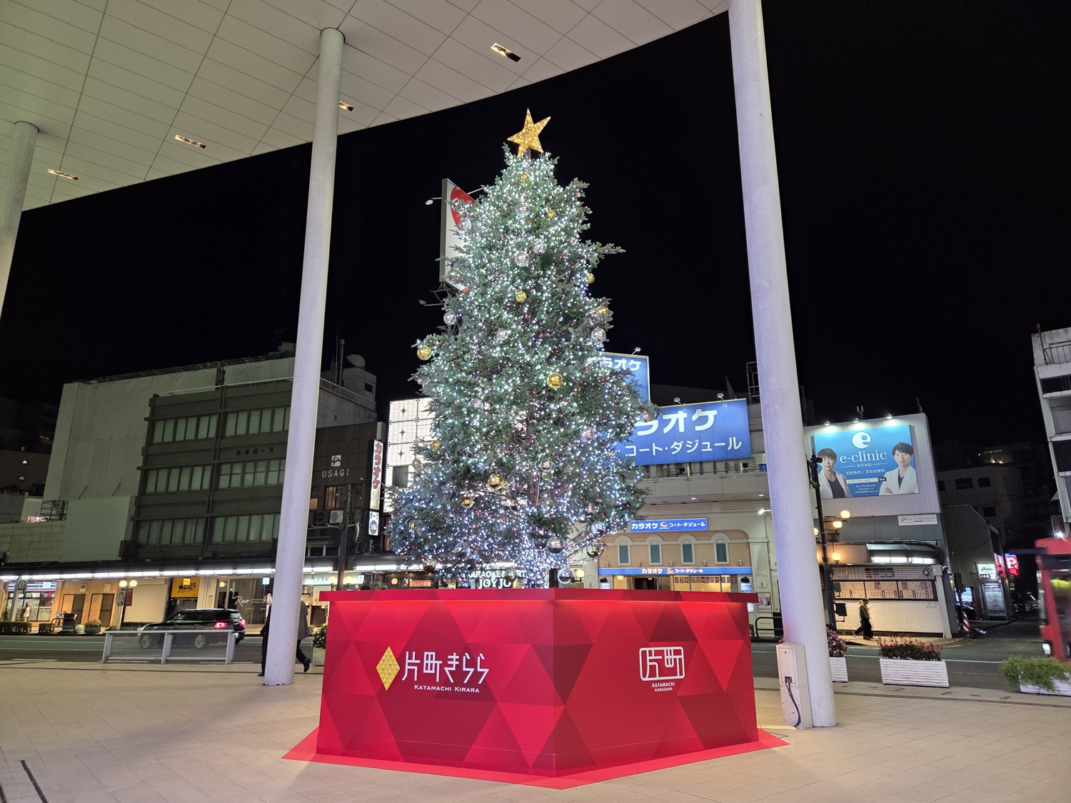 今年も片町きらら広場に高さ約10mの生木のクリスマスツリーが登場しました。