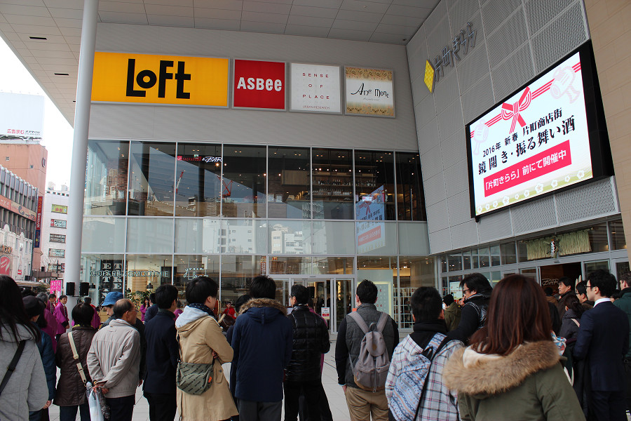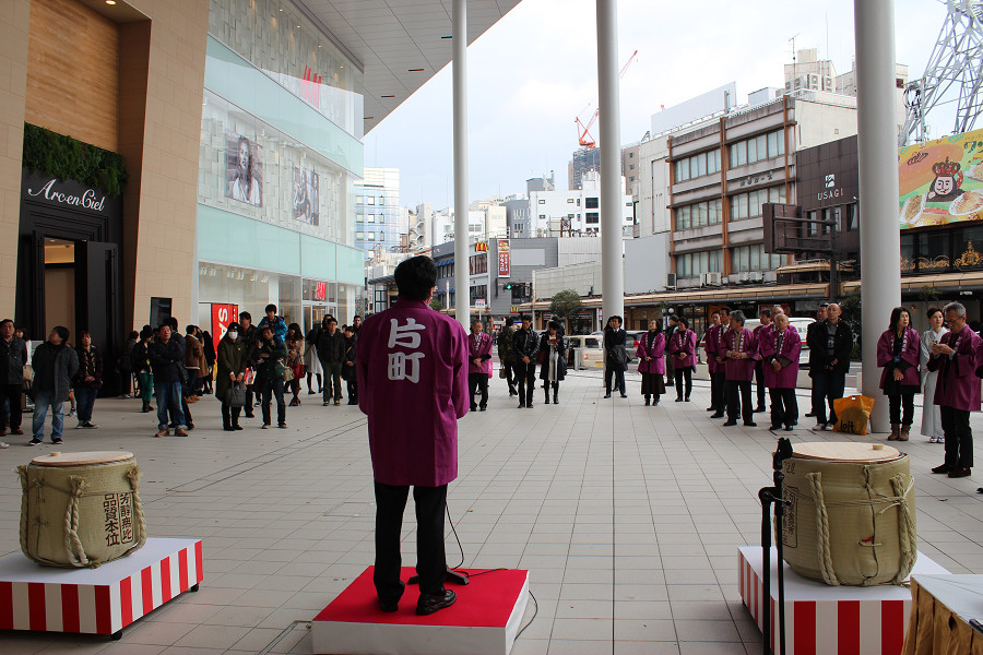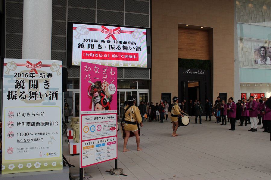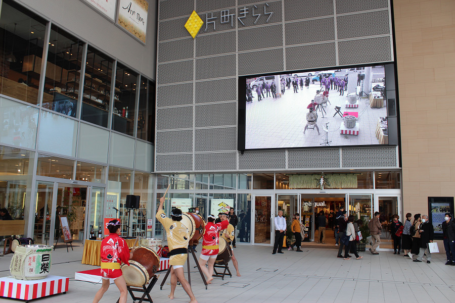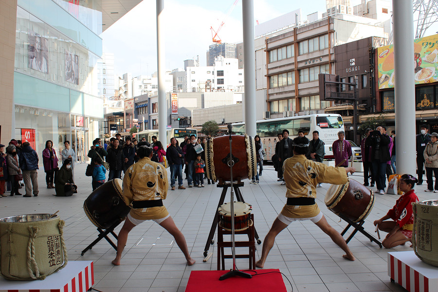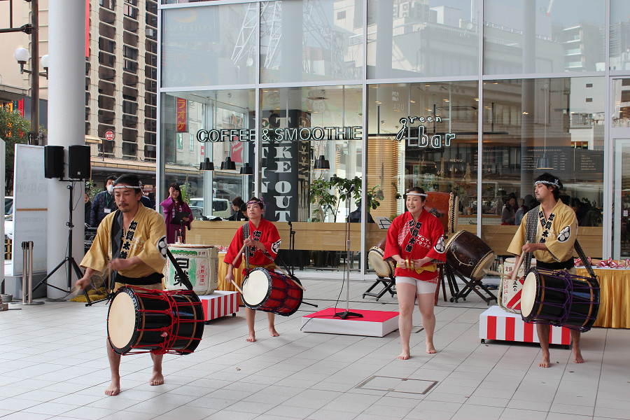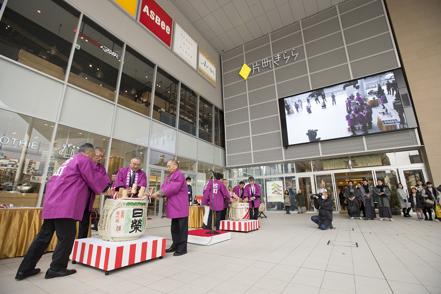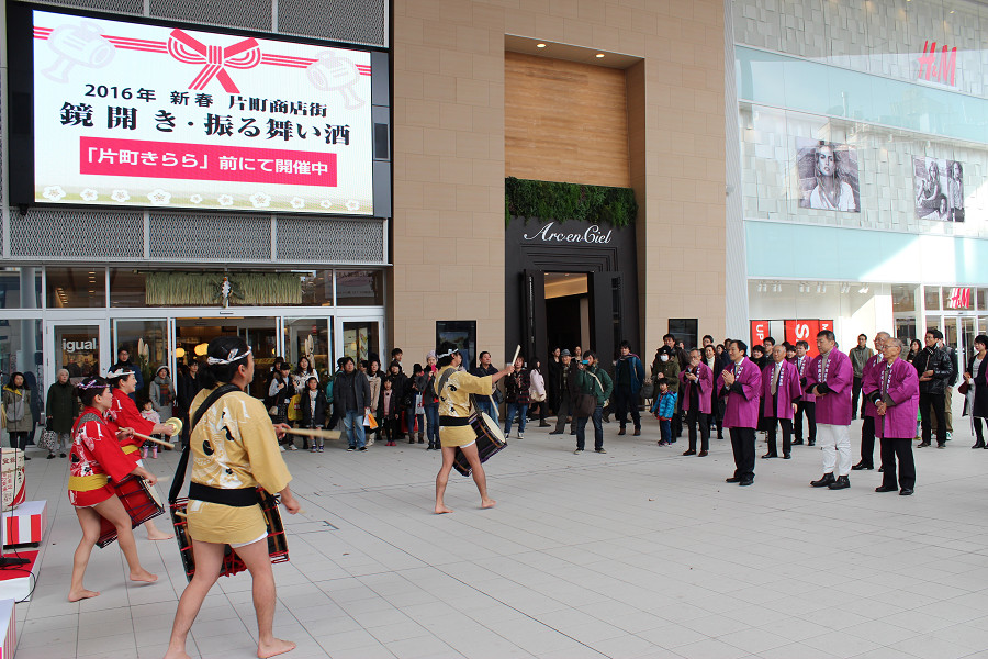 初売り日の1月2日に片町きららの広場にて、鏡開きと振る舞い酒を行いました。新春和太鼓の演奏も披露され、新年の幕開けをきららかにお祝いしました。