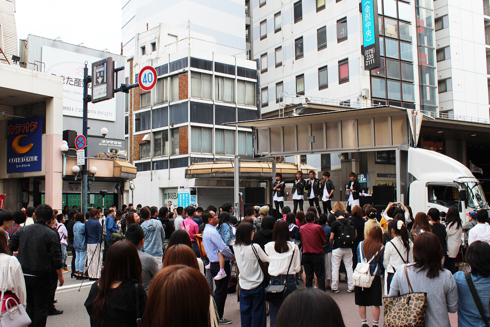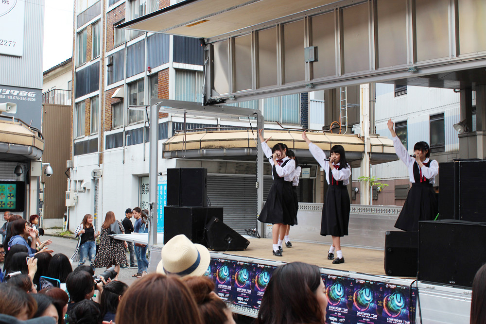 また「ほくりくアイドル部」「西金沢少女団」「新生おやゆびプリンセス」「オモテカホ」と北陸のアイドルグループが大集結し、元気なステージパフォーマンスを繰り広げました。そして、大阪を拠点に活動している「G.U.M」や金沢のクラブ「DOUBLE」で活躍する「DOUBLE ALL STARS」が登場し、最新の音楽で会場を盛り上げました。