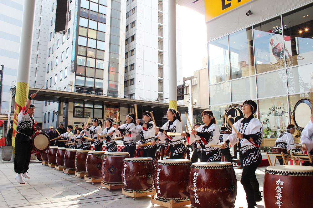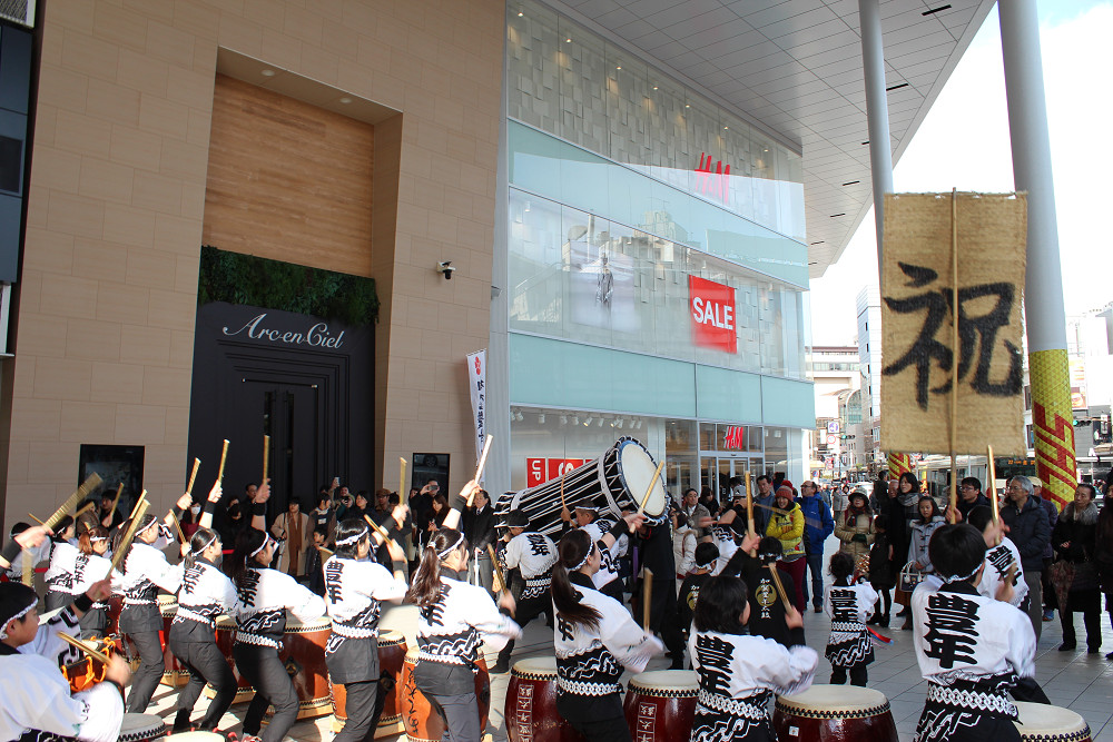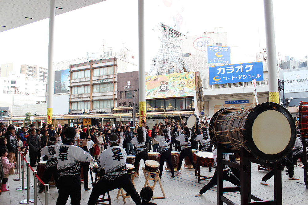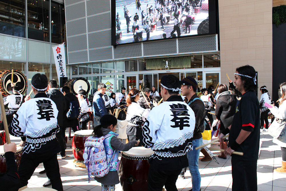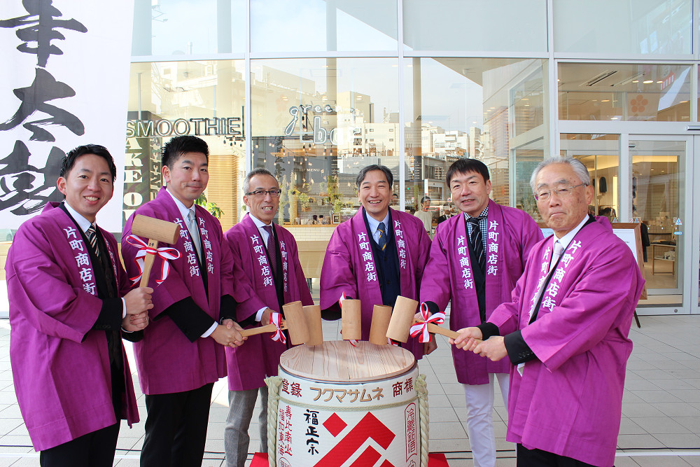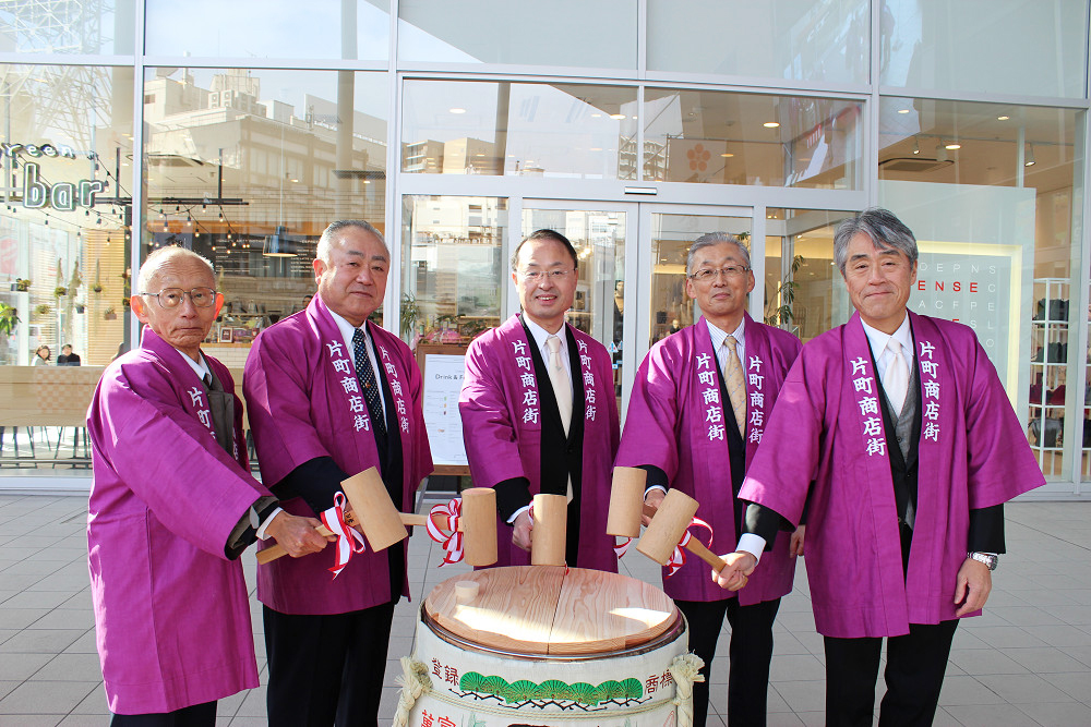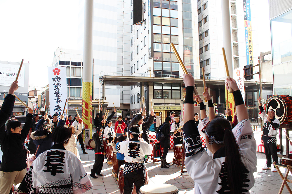 初売り日の1月2日に片町きらら広場にて、「2018年新春 鏡開き・振る舞い酒・祝い太鼓」を開催しました。