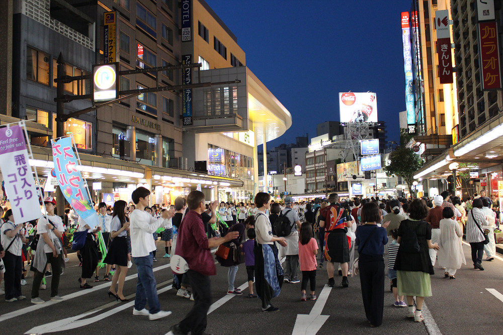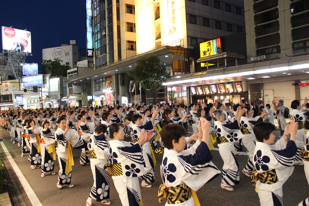 夕方からは金沢百万石まつりの名物の一つ、恒例の「百万石踊り流し」が行われ、踊りの輪が街なかを埋め尽くし、片町は夜遅くまで活気に溢れていました。