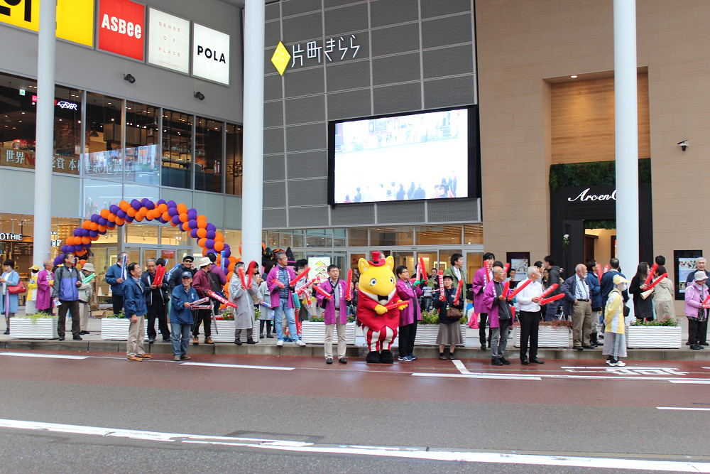 2017年10月29日(日) 「第3回 金沢マラソン」応援 平成29年10月29日(日)「第3回 金沢マラソン」が開催されました。 国道157号線の通りがマラソンコースとなっており、片町商店街ではゆるキャラ「かたまっちぃ」とともにランナーのみなさんを応援しました。
