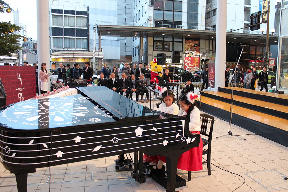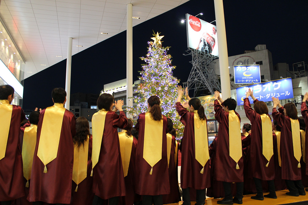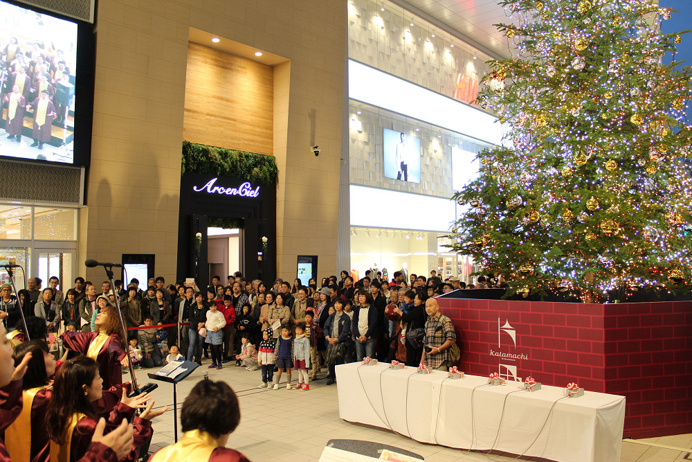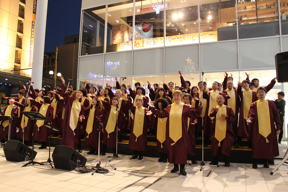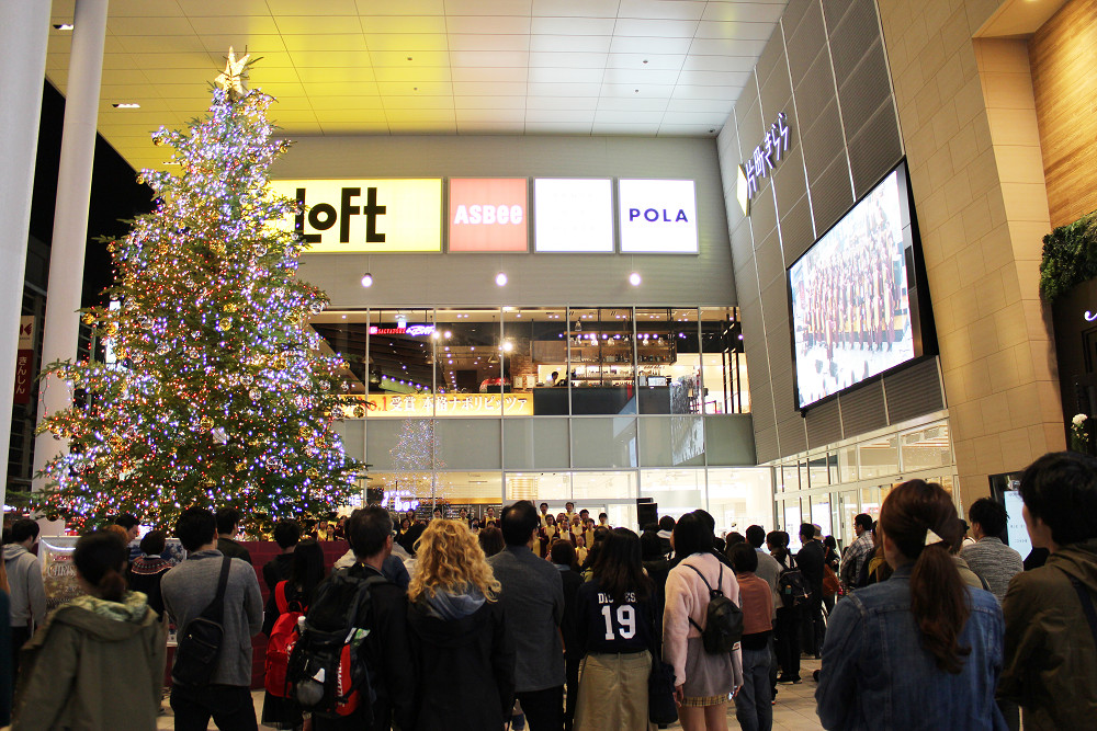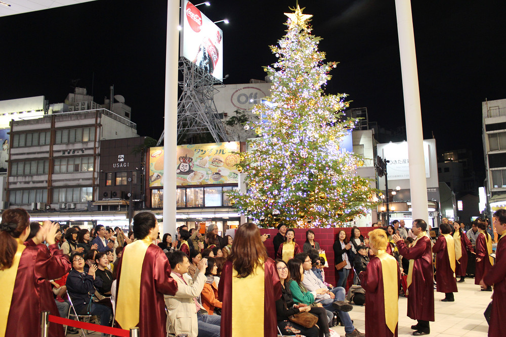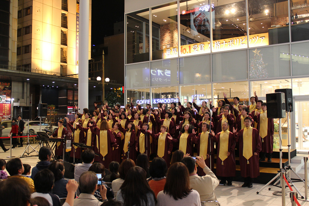 オープニング演奏として、「思い出まちかどピアノ」での小学生によるピアノ連弾が披露され、イルミネーション点灯の後は、ゴスペルグループAnointed Mass Choir(アノインティッド・マス・クワイヤー)のクリスマスコンサートが開催されました。