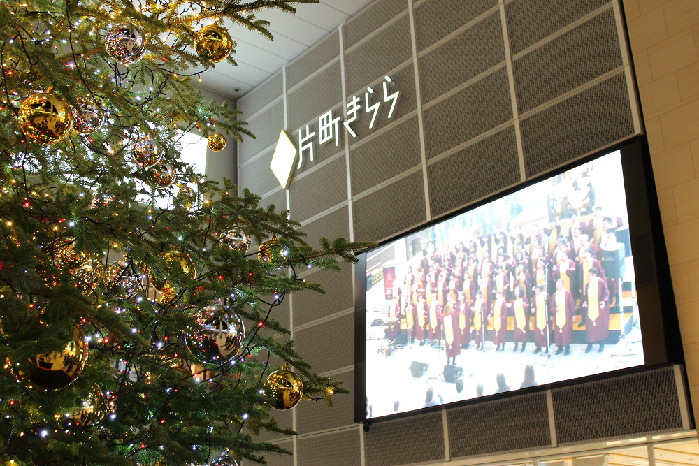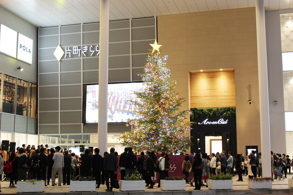 片町きらら広場に登場した、高さ約9メートルのもみの木のクリスマスツリーは11月3日~12月25日の期間設置され、生木の自然な香りとLEDとオーナメントで華やかに彩られたクリスマスツリーをお楽しみいただきました。