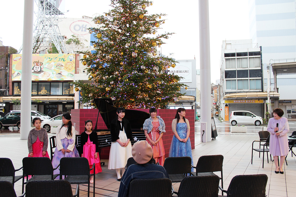 石川県ピアノ協会様のご協力により、クリスマスツリーがきらめく会場に設置されたグランドピアノで、ピアノコンクール入賞者のピアニストのみなさんによる演奏を披露していただきました。