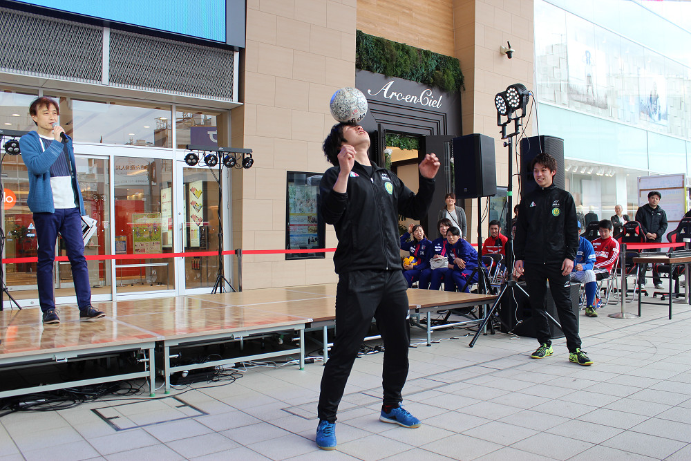 ツエーゲン金沢のアラン選手・小島選手vsサポーターのエキシビション戦も行われ、会場は盛り上がりました!
