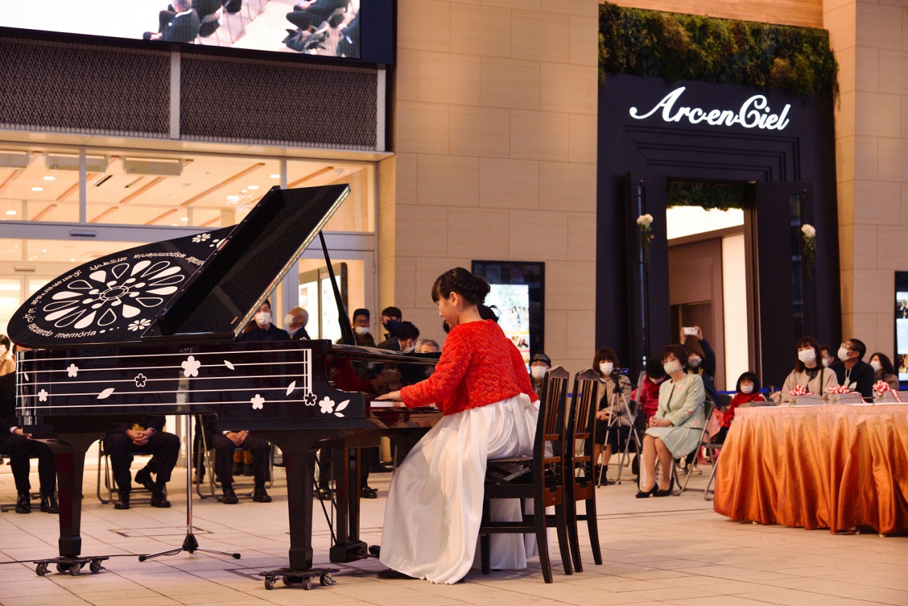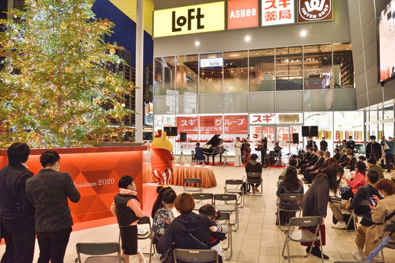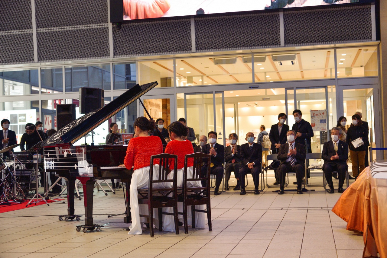 式典は石川県ピアノ協会の生徒による連弾で華やかにスタートし、来賓・関係者による点灯とともに「福井直秀カルテットwith中本美智子」のジャズ演奏が披露され、会場は一足早いクリスマスムードで盛り上がりました。