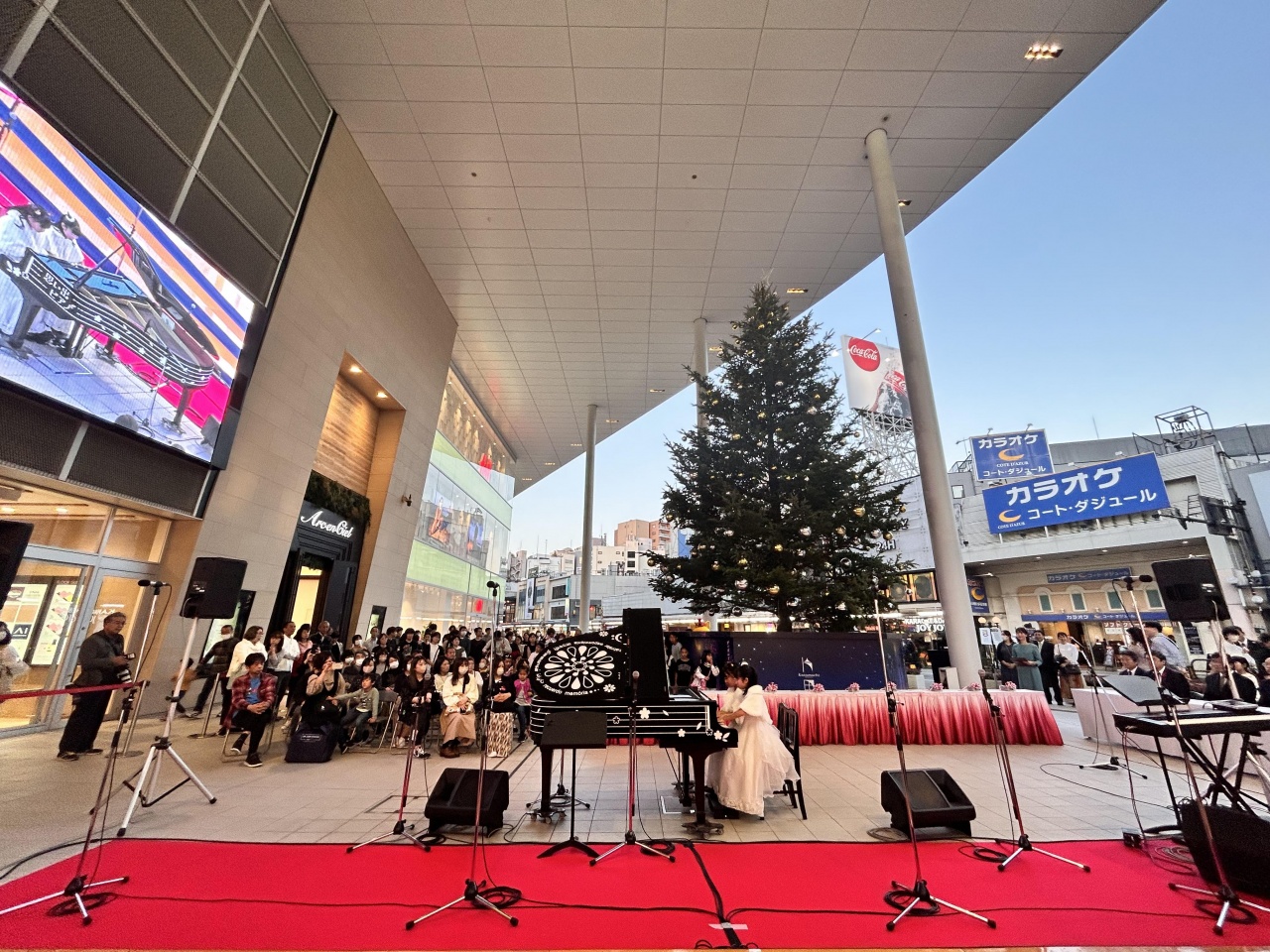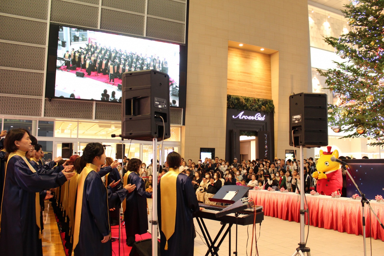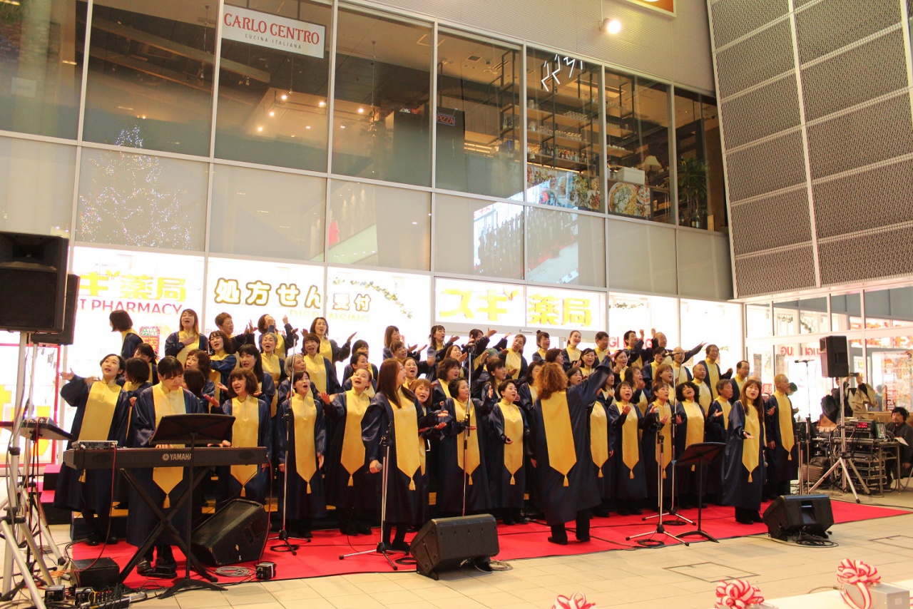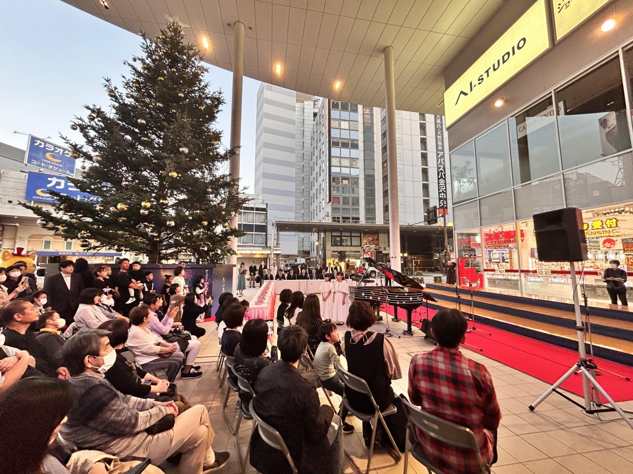 式典は石川県ピアノ協会の生徒さんによるピアノ演奏で幕開け、来賓・関係者によるツリーの点灯とともにゴスペルグループAnointed mass choir(アノインティッド・マス・クワイヤー)のクリスマスライブが披露されました。