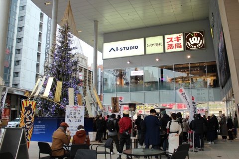 ご来賓・関係者による鏡開きの後、来場者のみなさまに振る舞いを行いました。