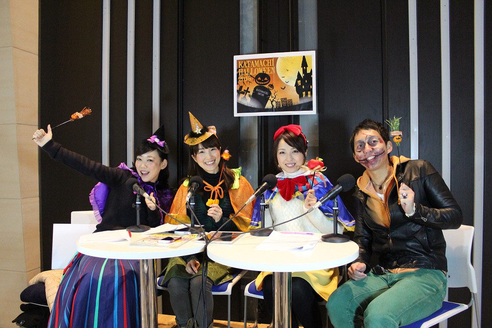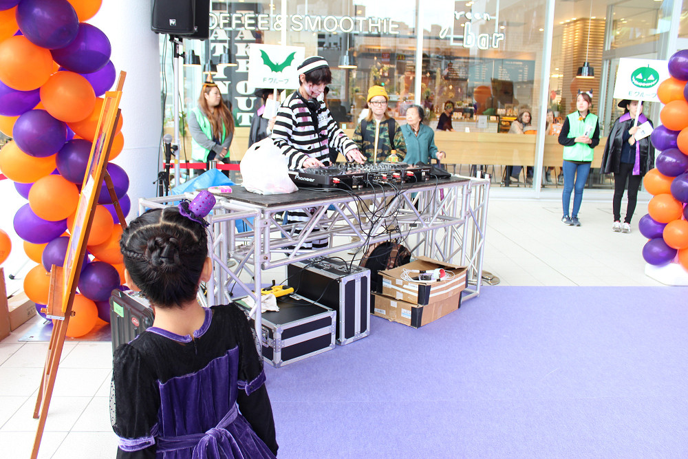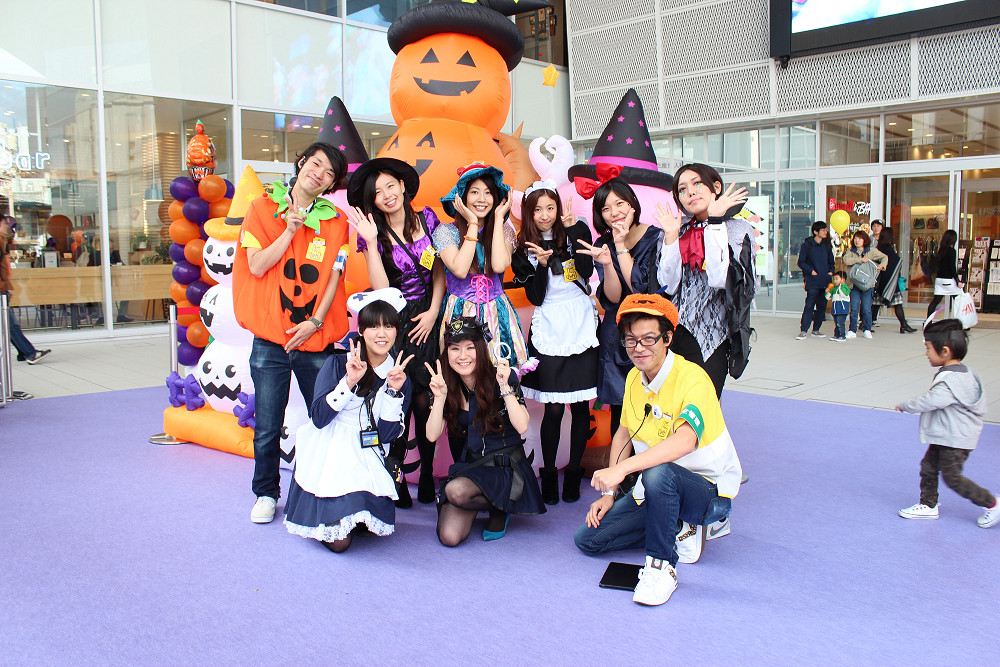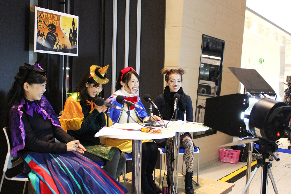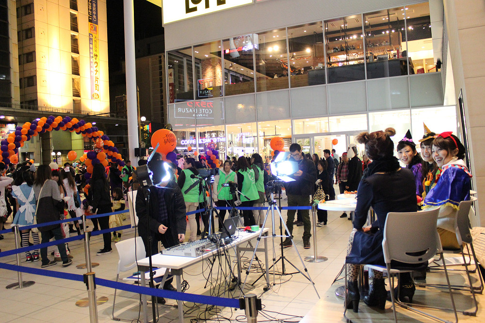 このほか、イドサヤカさんによる「ハロウィンポイントメイクサービス」をはじめ、夕方からはUstream「片町☆スクランブルナイト」の公開生配信、DJ「saaachun a.k.a FakeDoll」のパフォーマンスやダンサーTAKEさんと生徒たちによるフラッシュモブ、スパークリングワインの振る舞いなど様々な催しを行いました。