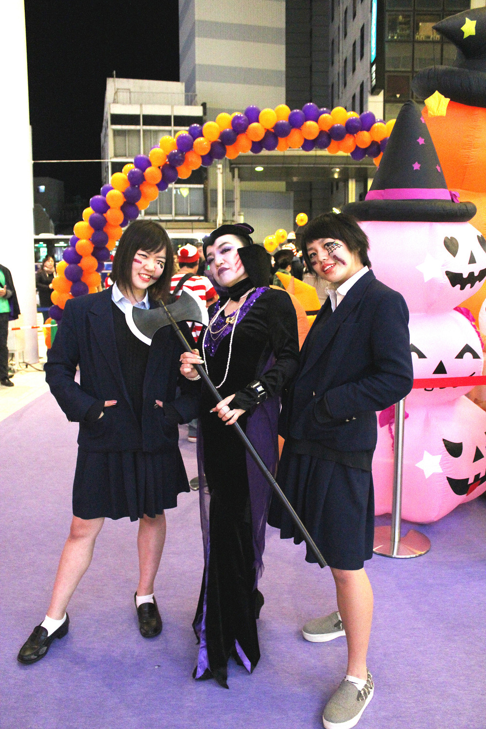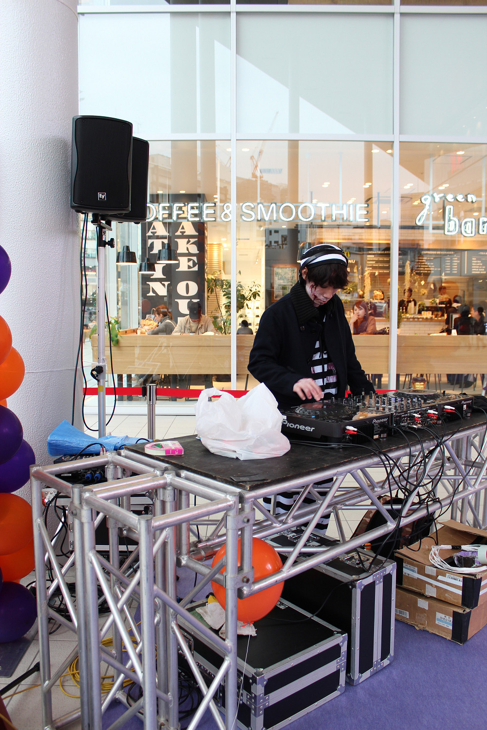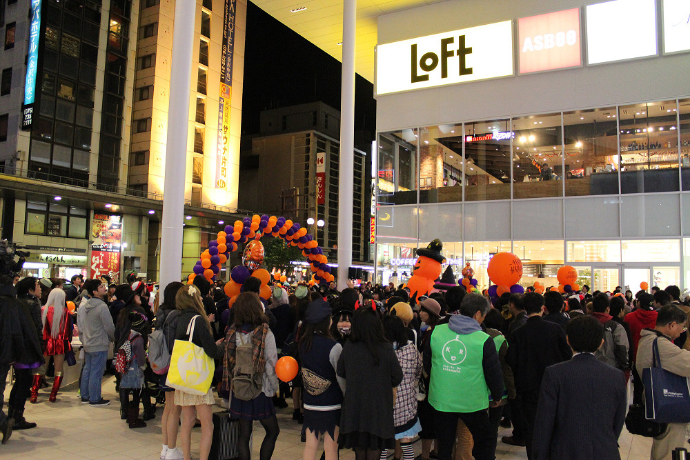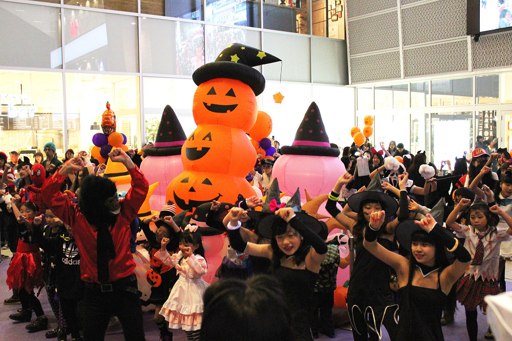 このほか、イドサヤカさんによる「ハロウィンポイントメイクサービス」をはじめ、夕方からはUstream「片町☆スクランブルナイト」の公開生配信、DJ「saaachun a.k.a FakeDoll」のパフォーマンスやダンサーTAKEさんと生徒たちによるフラッシュモブ、スパークリングワインの振る舞いなど様々な催しを行いました。